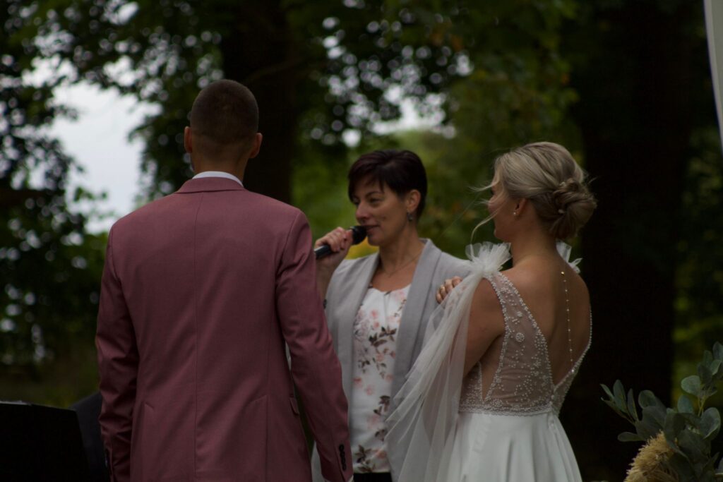 Auf Wunsch kann ich gern auch Gäste empfangen. Die Trauzeremonie wird nach euren Vorstellungen vollzogen, gern begleitet durch meine Erfahrungen – für gewöhnlich dauert diese zwischen 25 und 35 Minuten. Selbstverständlich kann dies auch bis zu einer Stunde dauern, je nach Aufmerksamkeitspotential eurer Gäste. Die „grobe halbe Stunde“ basiert schlicht auf meinen Erfahrungswerten aufgrund 15 Jahre Berufserfahrung. Von mir bekommt ihr selbstverständlich auch eine Trau-Urkunde als Erinnerung zum Schluss überreicht. Im Anschluss an die Trauung findet oft ein Sektempfang sowie die Gratulation durch eure Gäste statt. Hier endet dann mein Auftrag und ich ziehe mich diskret von eurer Feier zurück. Ganz wichtig, was hoffentlich nie passiert und dennoch nicht ganz planbar ist: was passiert, wenn die Rednerin krankheitsbedingt ausfällt? Keine Bange – ich habe liebe Kolleginnen die einspringen können, auf jeden Fall kümmere ich mich um adäquaten Ersatz. Ihr habt weitere Fragen? Kontaktiert mich gern.